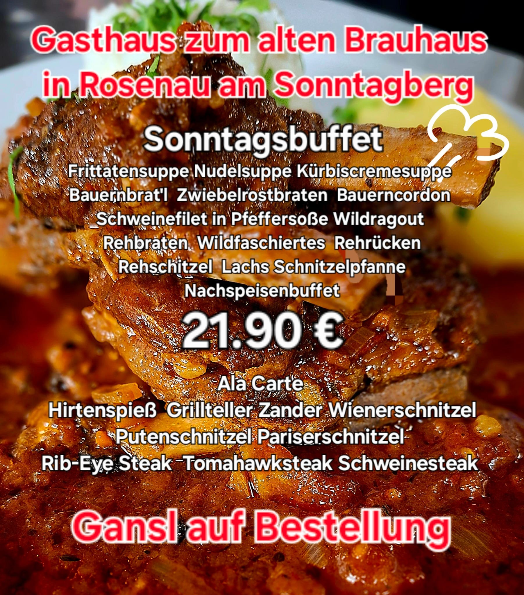 Das Gasthaus zum alten Brauhaus, gelegen in der Waidhofner Straße 25, 3332 Rosenau/Sonntagberg, ist ein charmantes und traditionelles Wirtshaus, das sowohl Einheimische als auch Besucher herzlich willkommen heißt. Es bietet eine gemütliche Atmosphäre, in der man sich sofort wohlfühlt. Die Küche des Hauses ist bekannt für ihre köstlichen, regionalen Spezialitäten, die mit frischen, lokalen Zutaten zubereitet werden. Egal, ob Sie einen deftigen Schweinsbraten, ein herzhaftes Gulasch oder eine feine Mehlspeise genießen möchten, hier kommen Sie kulinarisch voll auf Ihre Kosten. Zudem lädt der gemütliche Biergarten im Sommer zum Verweilen ein und bietet einen idealen Ort, um bei einem kühlen Getränk zu entspannen. Ein Besuch im Gasthaus zum alten Brauhaus ist ein Muss für jeden, der authentische österreichische Gastfreundschaft erleben möchte.